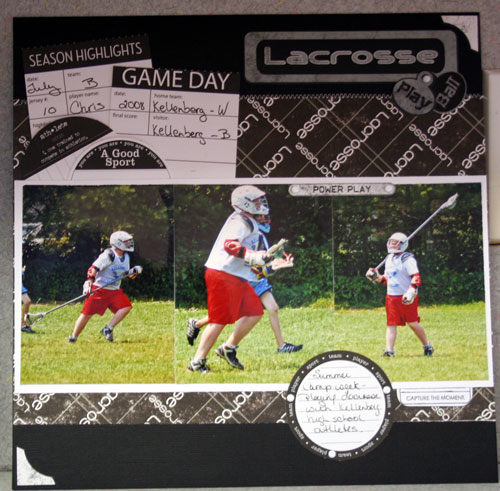 - Stamp “Capture the Moment” on white cardstock and adhere under the photo on the right side of the page