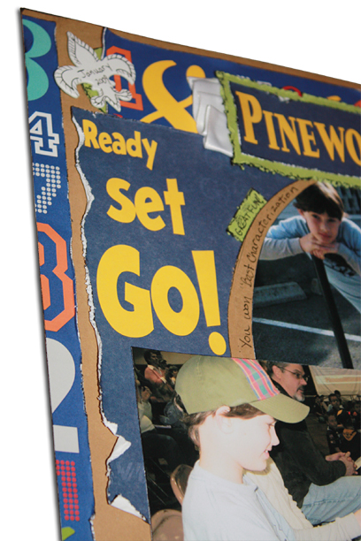 - Mat ‘Pinewood Derby” with distressed, inked green cardstock