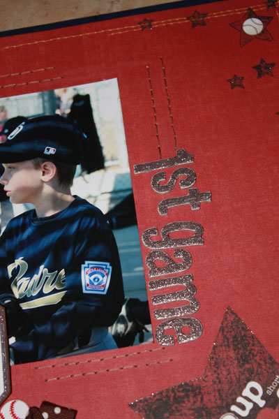 - Sew ribbon into a loose gather and stitch below Sports stamp