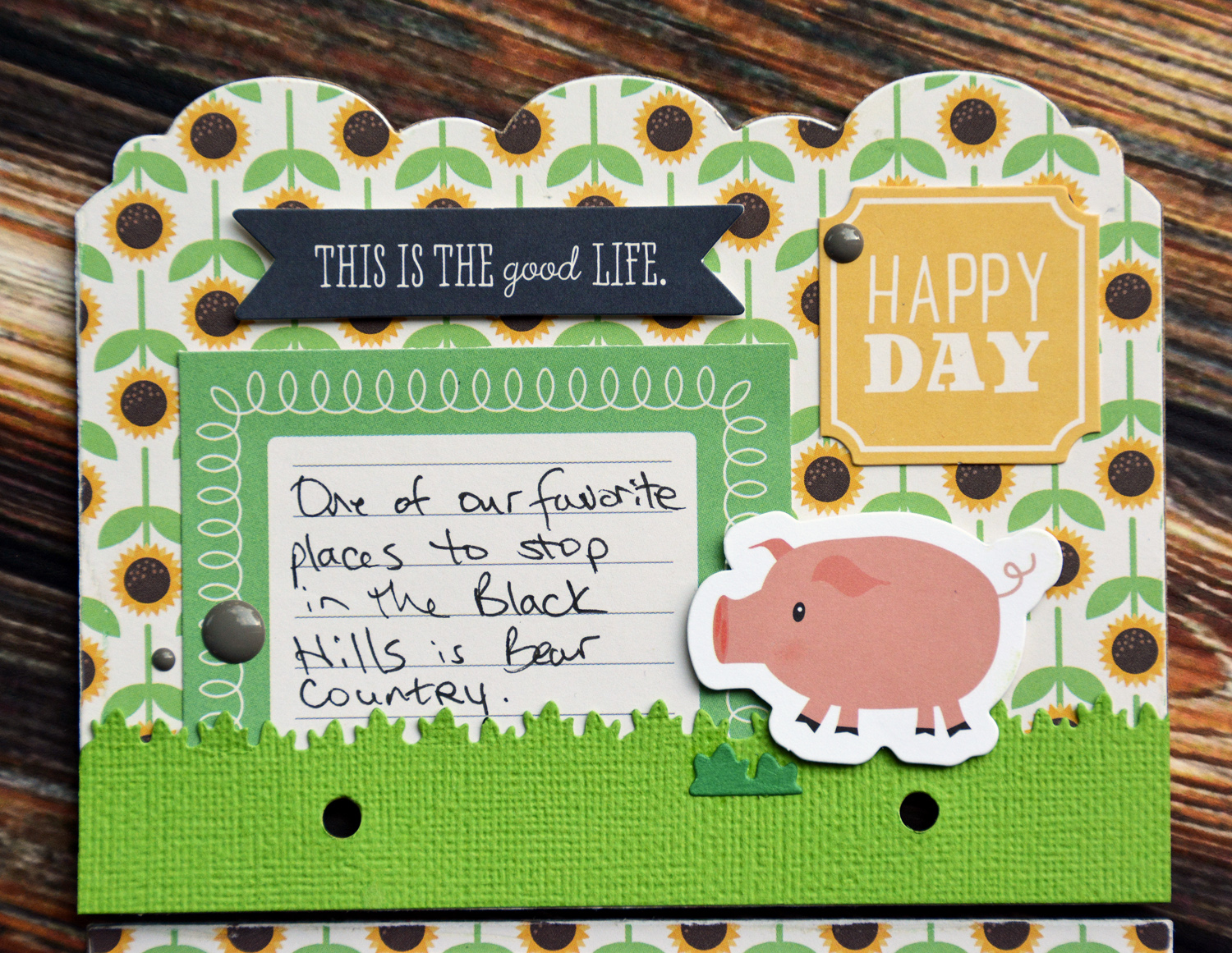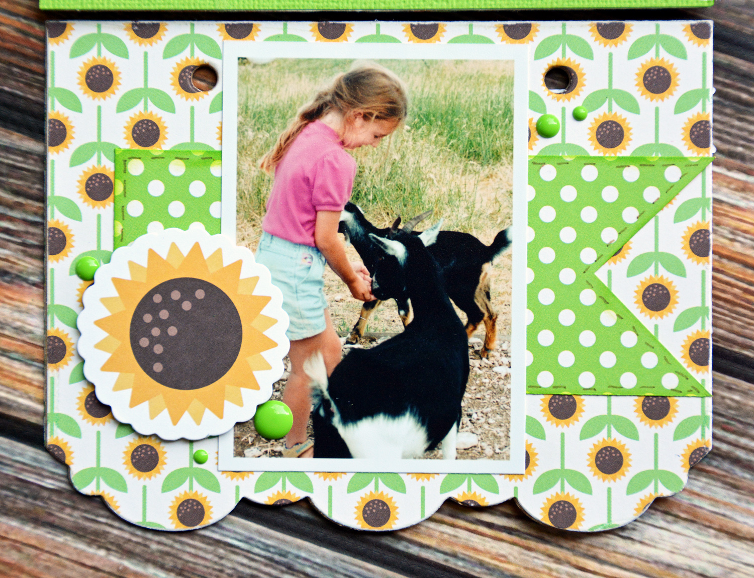 With school out for the summer I bet a lot of you have road trips planned! I thought it would be fun to put some of my favorite photos together in a mini album. The Heartland Farm collection is perfect for these photos of my kids at a petting zoo. It’s always the little goats my kids are drawn too. They just love to feed those baby goats!